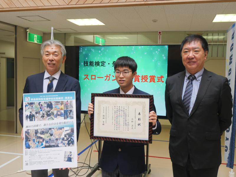 青森第二高等養護学校にてスローガン優秀賞授賞式が行われました。